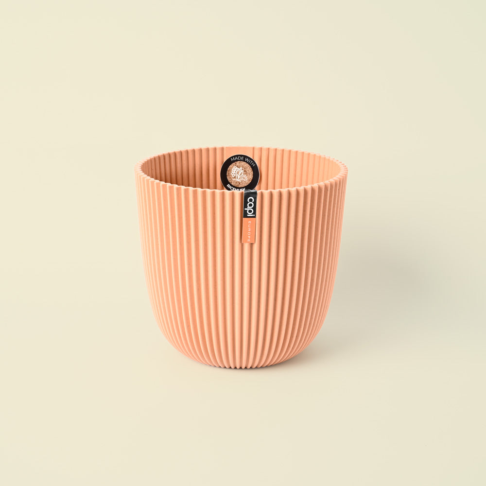 Made with a Peach rice husk finish, this pot adds a touch of elegance to any plant. Plus, grooved design is sleek and stylish in any home.