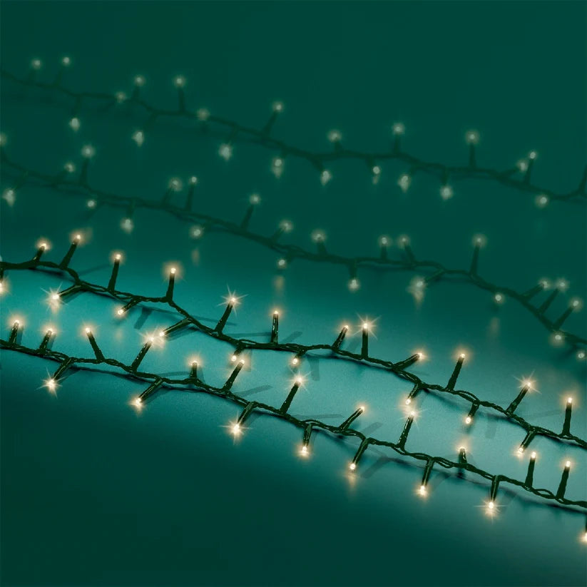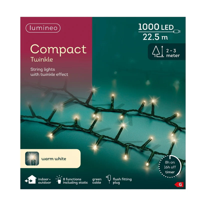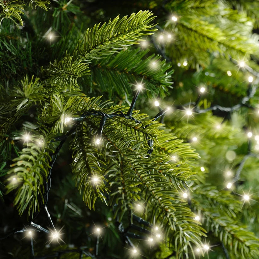 Get your Christmas tree glowing with these 1000 Warm White Compact Lights, designed for dense coverage and a professional finish. Spanning 22.5 metres with 2.2cm spacing between LEDs, they're perfect for wrapping around larger trees or bannisters. With 8 twinkle modes, weatherproof construction and a built-in timer, they combine performance and convenience in one festive package.