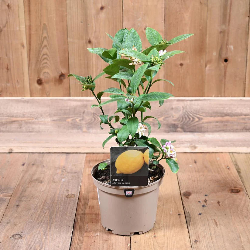 Citrus Meyers Lemon is a reliable choice for anyone wanting to grow fruit at home. It produces a generous display of sweetly scented white flowers in spring which develop into bright yellow lemons through the year. This variety is easy to care for and will grow well outside in the summer months. It can also tolerate light frost making it suitable for most sheltered gardens or patios. Place it in a warm sunny spot and bring it closer to the house in winter for steady growth and regular cropping.