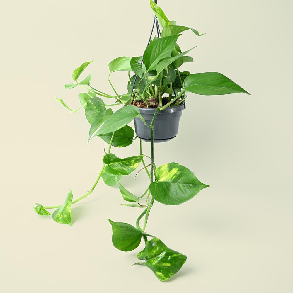 Let your greenery cascade in style with the Epipremnum aureum, also known as the Golden Pothos, in its perfect hanging form! This easy-to-care-for vine boasts beautiful, heart-shaped leaves with irregular cream and yellow variegation. The trailing foliage spills out of hanging baskets or pots on high shelves, adding a touch of lushness and life to any space.
