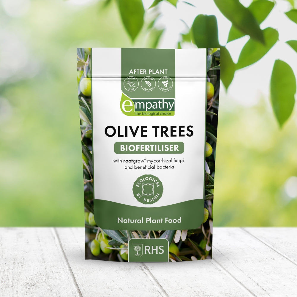 After Plant Olive Trees Biofertiliser is an RHS endorsed plant feed created for the specific needs of olive trees in pots or in the ground. It contains rootgrow mycorrhizal fungi and beneficial bacteria that help young olives establish strong root systems during their first year while their natural fungal partners develop. Regular use supports steady growth fuller foliage and improved fruiting so olive trees stay healthy and productive throughout the year.