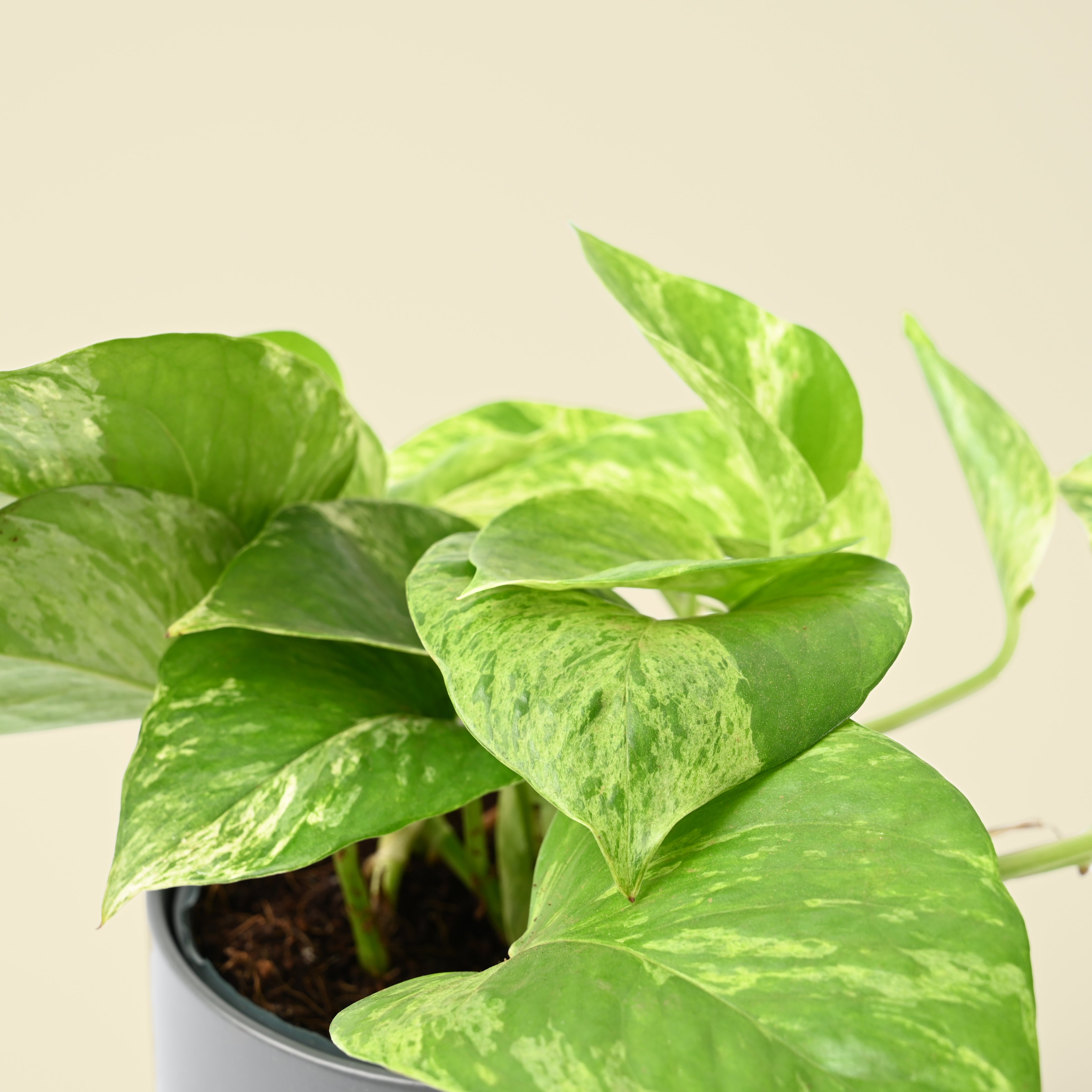 Bring a splash of elegance to your indoor jungle with the Epipremnum ‘Marble Queen’, a beautifully variegated form of the ever-popular Devil’s Ivy. Its glossy, heart-shaped leaves feature marbled patterns of green and creamy white, creating a striking contrast that brightens any shelf, desk, or hanging pot.