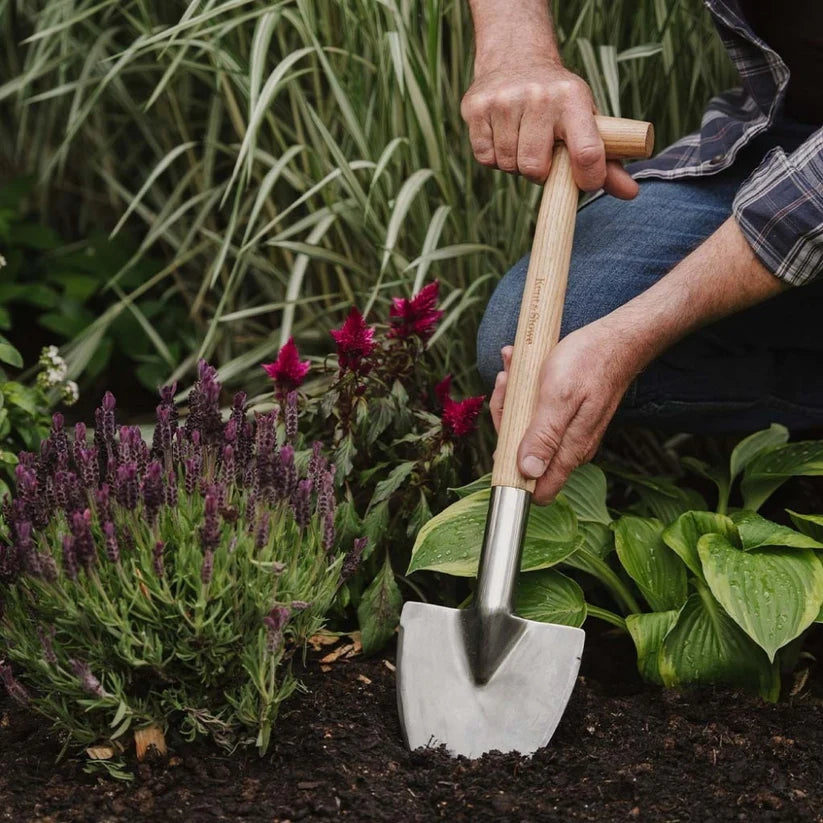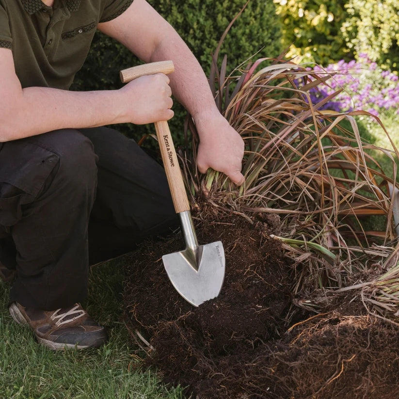The Kent & Stowe Stainless Steel Perennial Spade is the perfect tool for dividing perennial plants with precision. Featuring a pointed head, this spade slices effortlessly through roots without causing damage, making it ideal for transplanting and maintaining healthy garden beds. The midi-length handle offers improved control, power, and comfort when working in beds and borders.