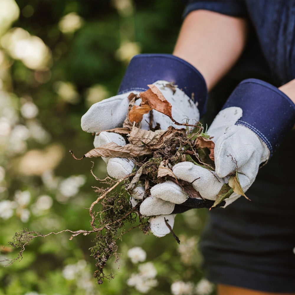 Kent & Stowe Navy Fleece Lined Rigger Gloves are designed for heavy duty garden work such as clearing digging and handling rough ground. The suede palm fingertips and knuckle strap give firm protection while the safety cuff helps shield the wrist. A warm fleece lining adds comfort in colder weather which makes these gloves a dependable choice for tougher outdoor tasks.