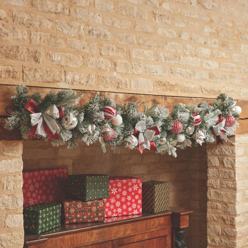 Bring festive elegance to your home with the Lapland Garland 180 cm, from the Three Kings collection. This beautifully decorated garland includes floral touches, pinecones, bows and baubles, along with a graceful snowy finish. Supplied with a hanging loop, it is suitable for both indoor and sheltered outdoor use. Ideal for draping over mantels, stair rails, door frames or windows, it adds charm and structure to your seasonal décor with ease.