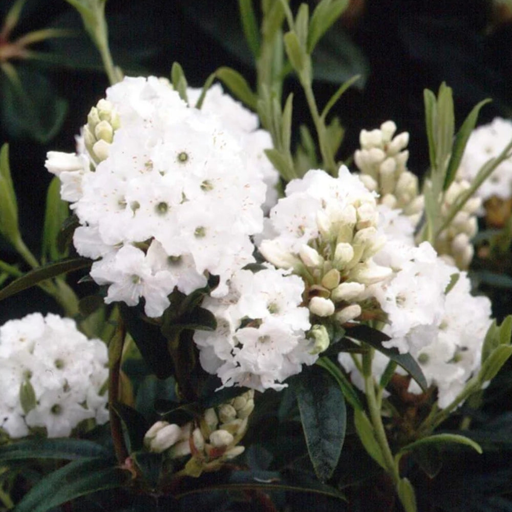 Rhododendron Arctic Tern is a compact evergreen shrub with a neat appearance and a steady upright shape. It produces small green throated white flowers in compact clusters from late spring which stand out against its narrow glossy green leaves. Reaching around 0.5 to 1 metre in height and spread over time it is suited to smaller borders, rockeries and containers where reliable structure and gentle colour are needed. This variety prefers acidic moist but well drained soil, partial shade and a sheltered position. It is hardy across most of the UK, rated H5.