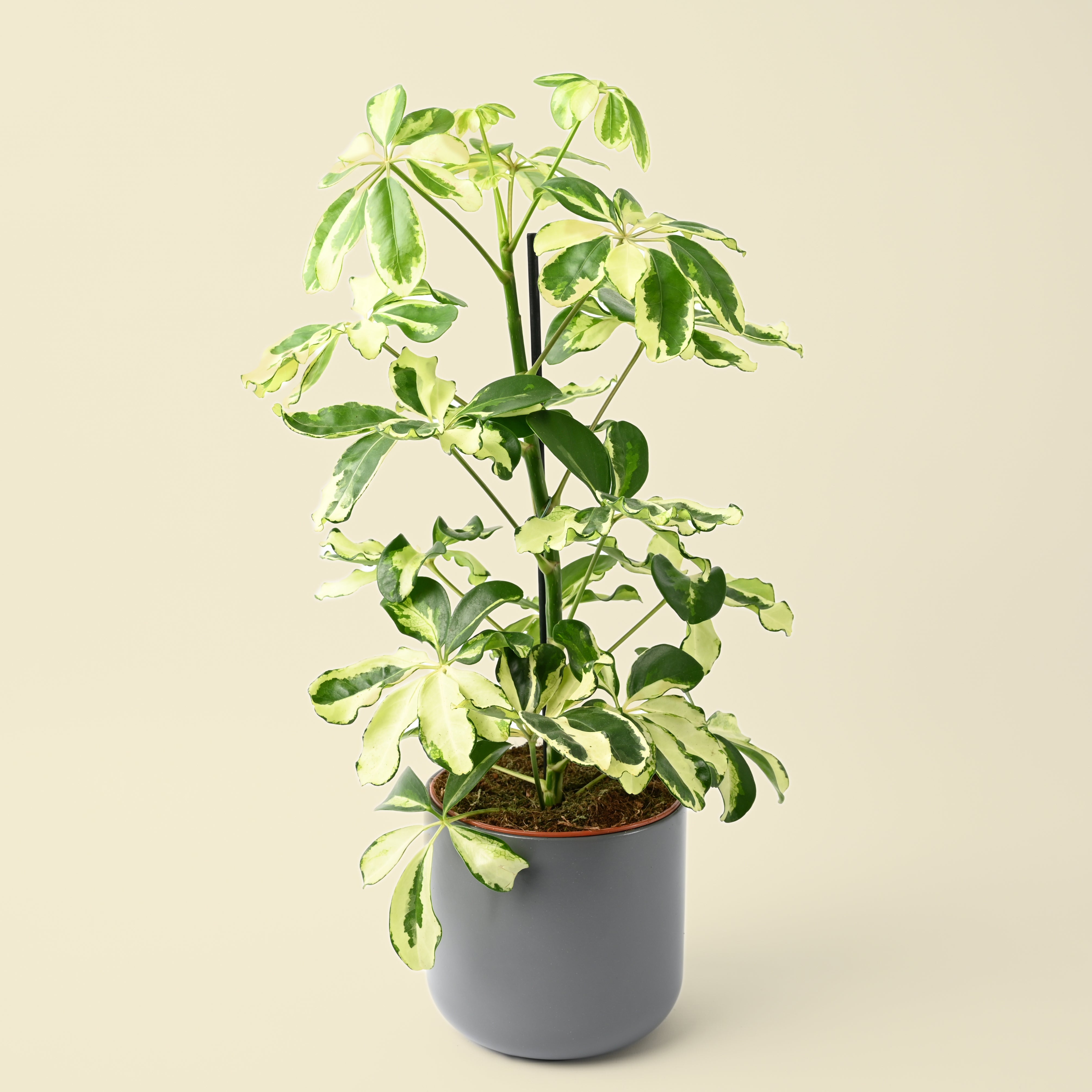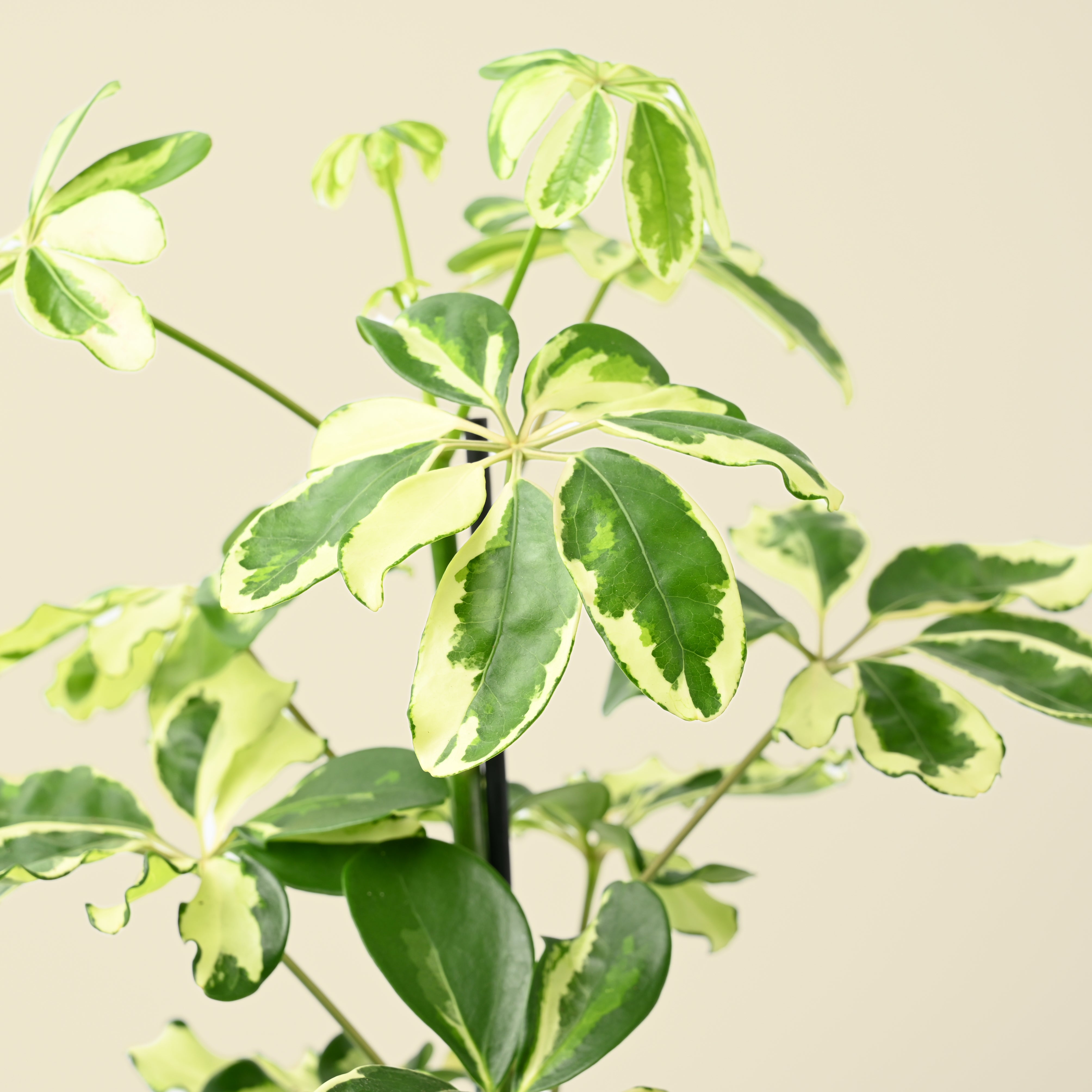 Bring soft, variegated greenery into your home with the elegant Schefflera arboricola ‘Charlotte’, a compact form of the popular Umbrella Plant. Its glossy leaves are beautifully marked with creamy-white edges and arranged in a distinctive umbrella-like pattern, creating a fresh and lively look that suits any interior.