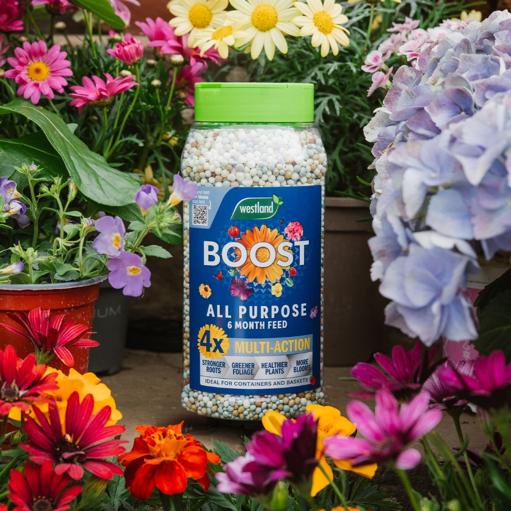 Westland Boost All Purpose Multi Action Granules supply a long lasting feed that supports plants through the whole growing season with nutrients that strengthen roots keep foliage green and encourage reliable flowering and cropping. The controlled release formula feeds for up to six months and includes ingredients that help roots settle quickly after planting. Suitable for pots baskets and flower beds it works well when mixed into all purpose compost and can be paired with Boost Liquid Feed for even better seasonal results.